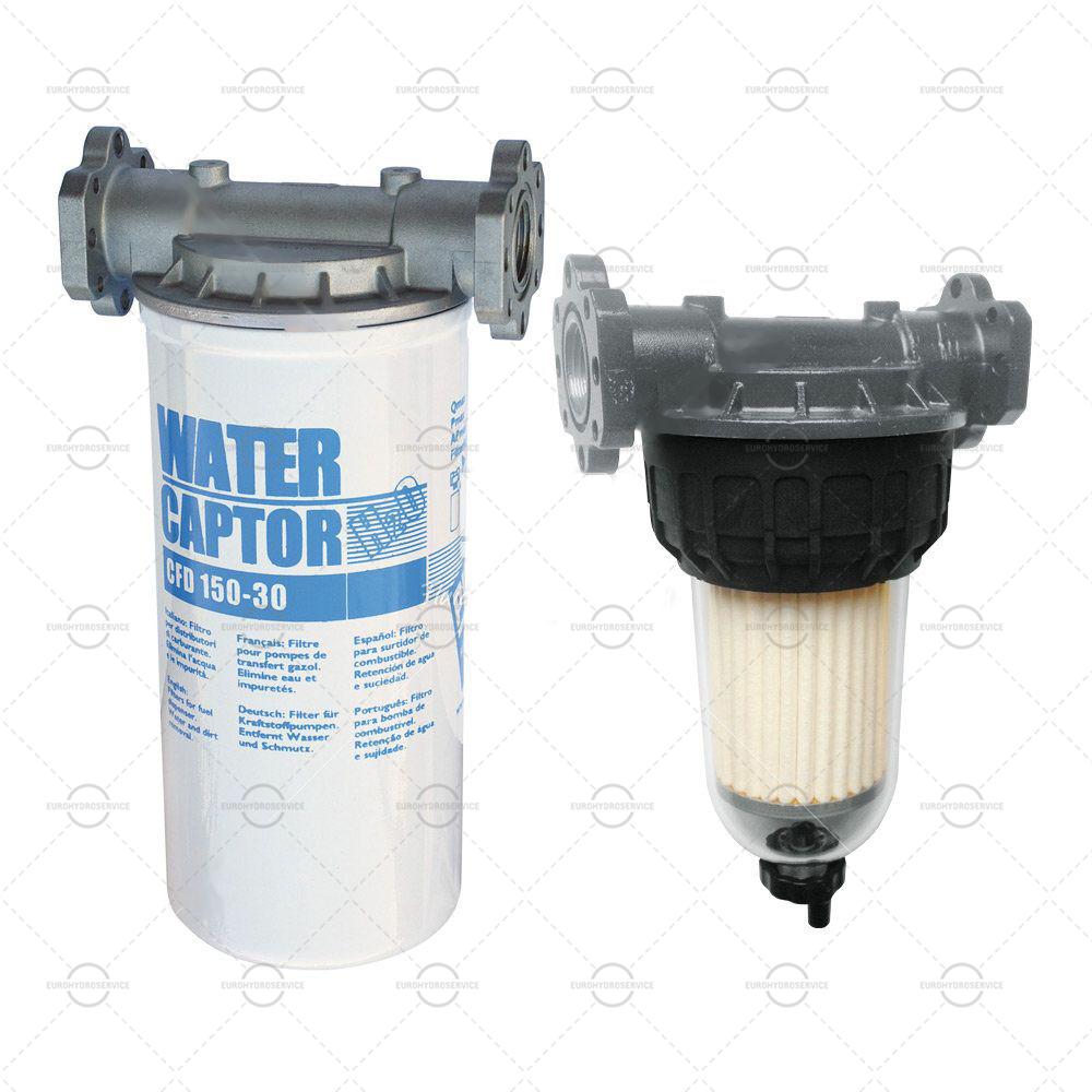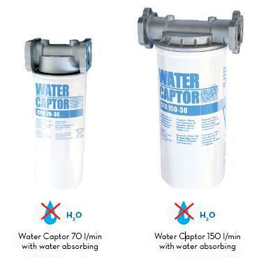 Они предлагаются с патронами для абсорбции воды. Благодаря прозрачному корпусу, можно непрерывно следить за степенью загрязнения или количеством удерживаемой воды. Клапан на дне резервуара позволяет сливать воду или осевшую грязь.